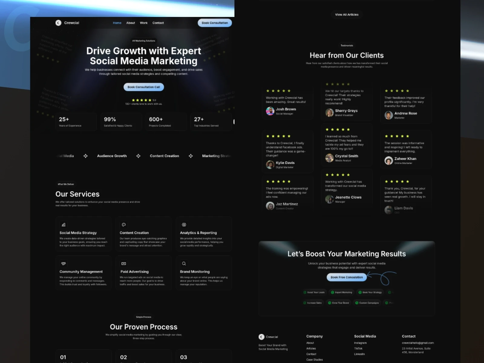 SEO-First Architecture: Every page and section is optimized according to the latest SEO best practices, including semantic HTML, fast load times, meta tags, and schema markup, ensuring your site ranks for key industry terms like "agency," "digital marketing," "SEO services," and more.